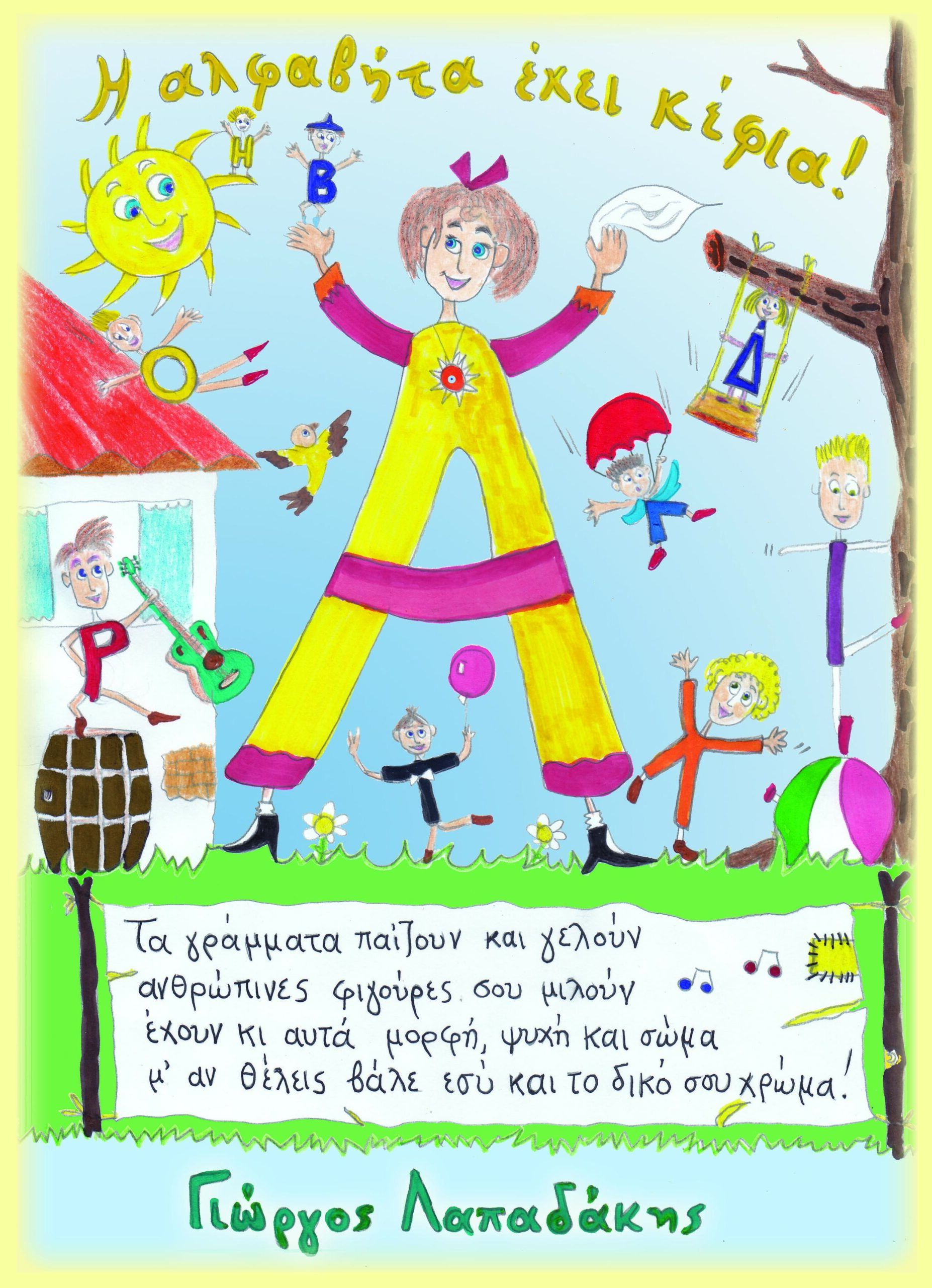 Τα 24 γράμματα του Ελληνικού Αλφαβήτου εμψυχώνονται και παρουσιάζονται πολύχρωμα με 24 διαφορετικούς ανθρώπινους χαρακτήρες. Το παιδί χρωματίζει, παίζει και χαίρεται. Παραλληλίζει τα γράμματα με οικείες ανθρώπινες φιγούρες και αναπτύσσει την φαντασία του.